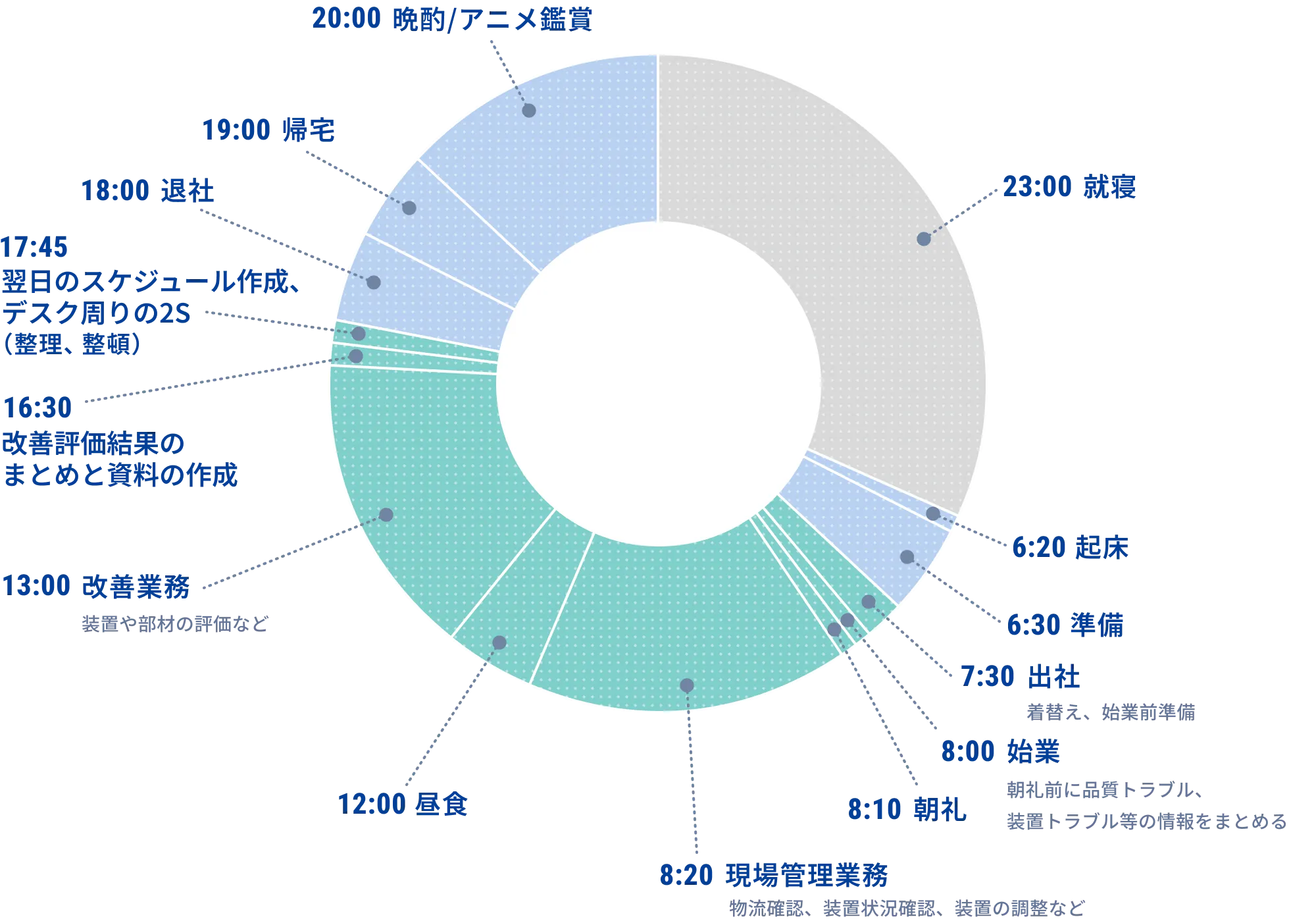 現在、シリコンウエハー製造装置の管理や調整、材料の管理を担当しています。製造装置の条件や状態、使用する材料はシリコンウエハーの品質に大きく影響を与えるため、異常があったらすぐ見つけることが大切です。以前、異常の発見が遅れてしまったことがありました。同じ失敗を繰り返さないため、分からないことや疑問点は自分から積極的に上司や先輩に質問したり、自分で文献を調べたりして知識の習得に努めています。