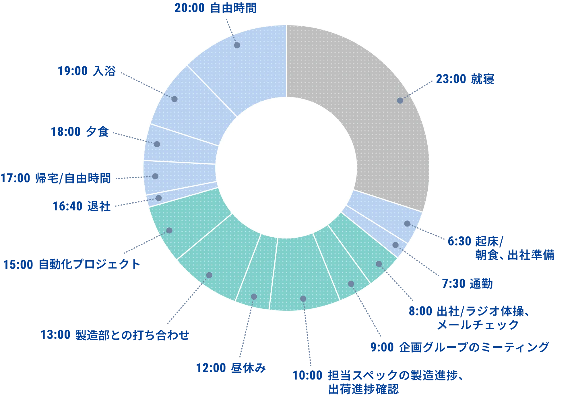 現在、私は生産企画部の企画グループに所属しています。「どの製品を、どの工場で、いつまでに、何枚生産するのか」といった生産/出荷の計画作成が主な業務です。トラブルなどへの臨機応変な対応力、他部署と連携を図るためのコミュニケーション能力が求められます。心がけているのは、誰が相手でも臆せず話せるように準備をすることです。学生の頃に比べて様々な世代の人との関わりが増えたことや、自身の知識やスキル不足から、萎縮してうまく話せない場面がありました。事前に調べたり、分からないことは分かるまで質問したりと努力を続け、対等に話せる力が身に付いたと実感しています。